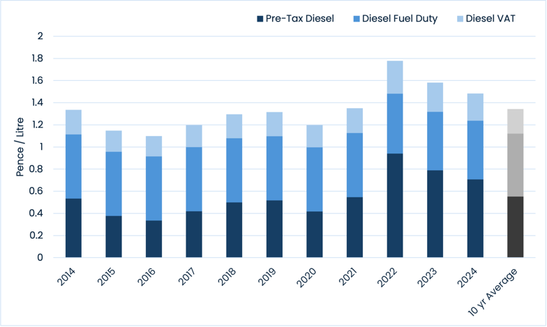 The fluctuating price of fuel at the pump for petrol and diesel is the result of more than just production and distribution costs. When paying at the pump, factors at play include the crude oil price, the price of biofuels when in the fuel, delivery and distribution costs, Fuel Duty (FD), Value Added Tax (VAT), greenhouse gas obligations, development fuel obligations and forecourt costs and profits.